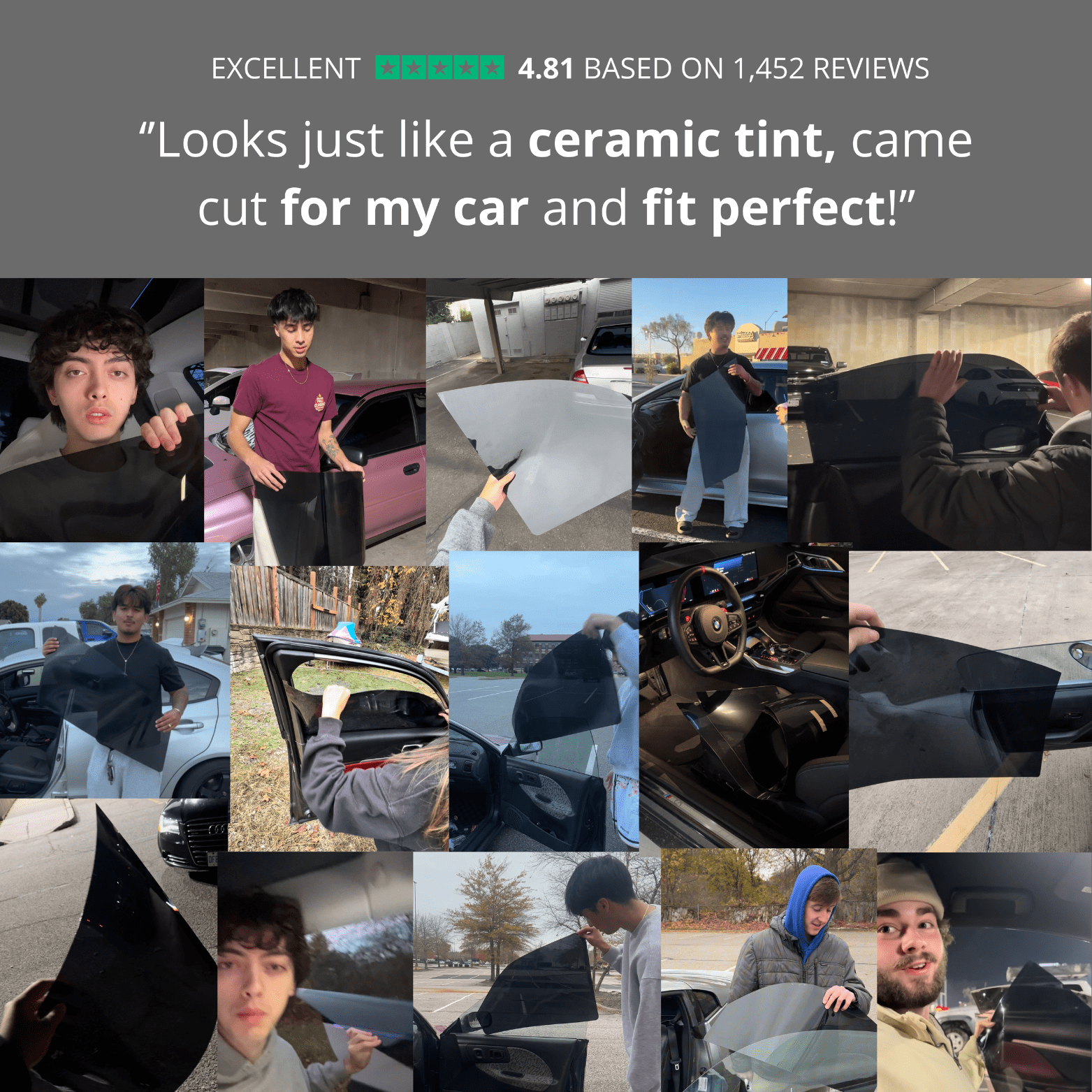 It arrived perfectly cut for my car, took about 4 minutes to install, and looks exactly like ceramic tint, for half the price.